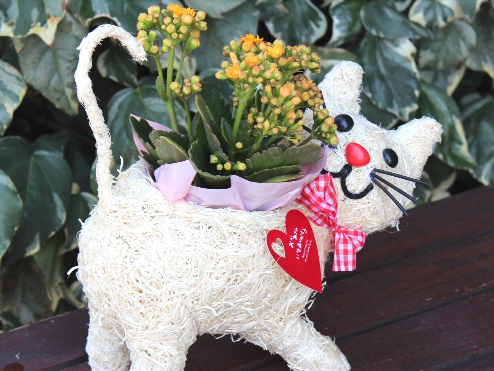 大人気の猫ちゃんシリーズ!猫大好きな方には嬉しいですよね!バスケットが猫の形になって、お花が見終わった後にも、小物入れとして使えて嬉しいですね。猫のバスケットとしては珍しく、愛嬌ある顔も人気の秘密ですね!当店で人気だにゃん!